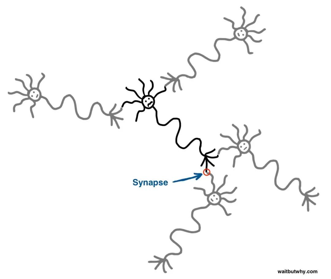 (来源:waitbutwhy.com)通过神经元之间电信号的传递,我们能够表达自己的喜怒哀乐,能够去记忆、思考、感受、学习等。