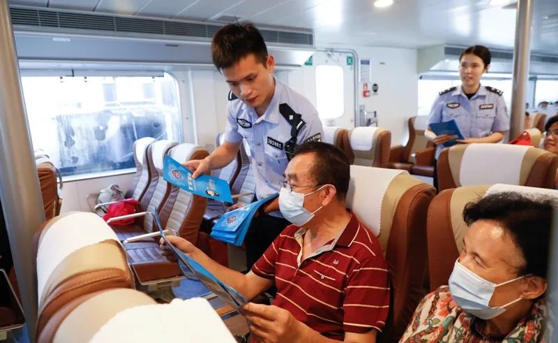 旅客登轮后,顺德边检站还派出普法小分队,为旅客提供政策咨询、引导帮扶等服务,高效便捷的通关模式和优质热情的边检服务赢得了顺德客运联营有限公司、船方和旅客的一致好评。