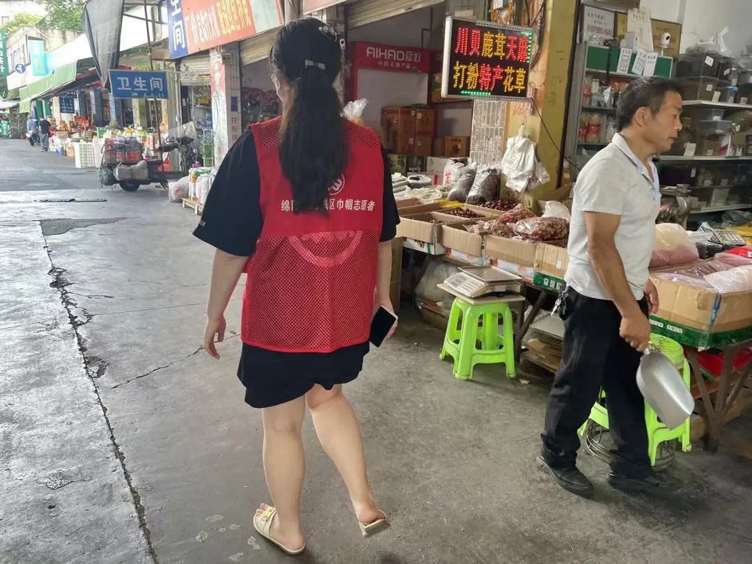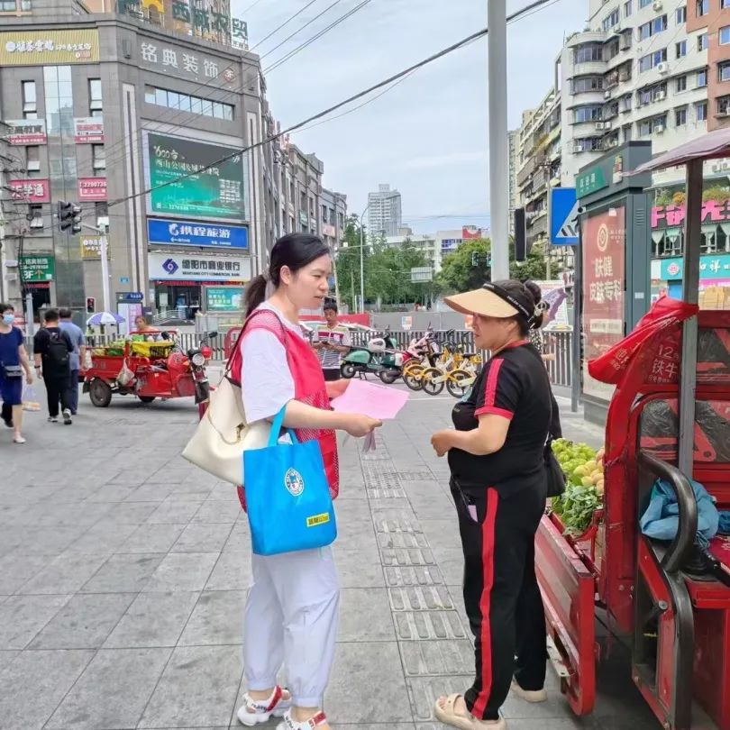 工区街道灵通社区妇联开展护考行动,向居民和商贩发放倡议书。