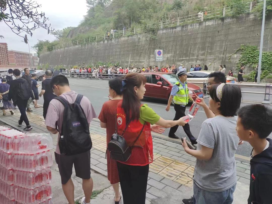 城郊街道三里社区妇联在考场外设立志愿服务点,开展“护航高考送清凉”志愿服务活动。