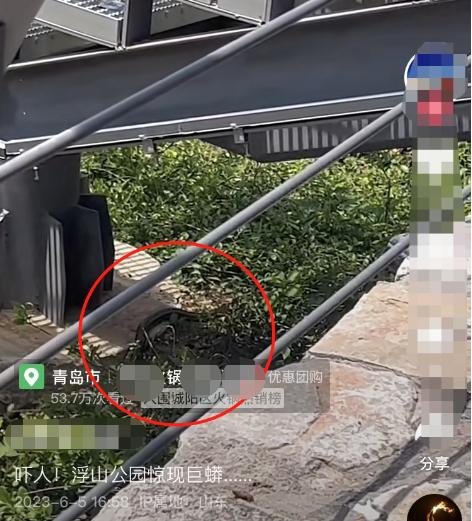 浮山公园真的惊现巨蟒吗?在铁台阶下蠕动的蛇形物体是蟒吗?这段发布于6月5日的视频,拍摄于哪天?