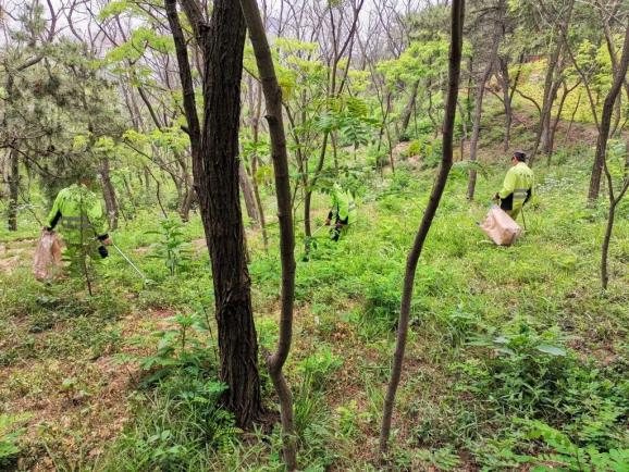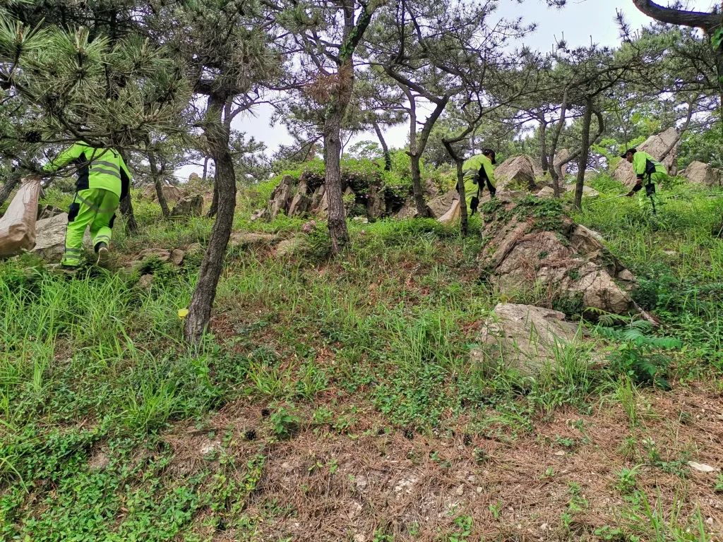 工作人员正在搜山寻找蛇的踪迹于是,记者联系了浮山保护管理中心,将抖音上发布的情况告知了管理中心的工作人员。