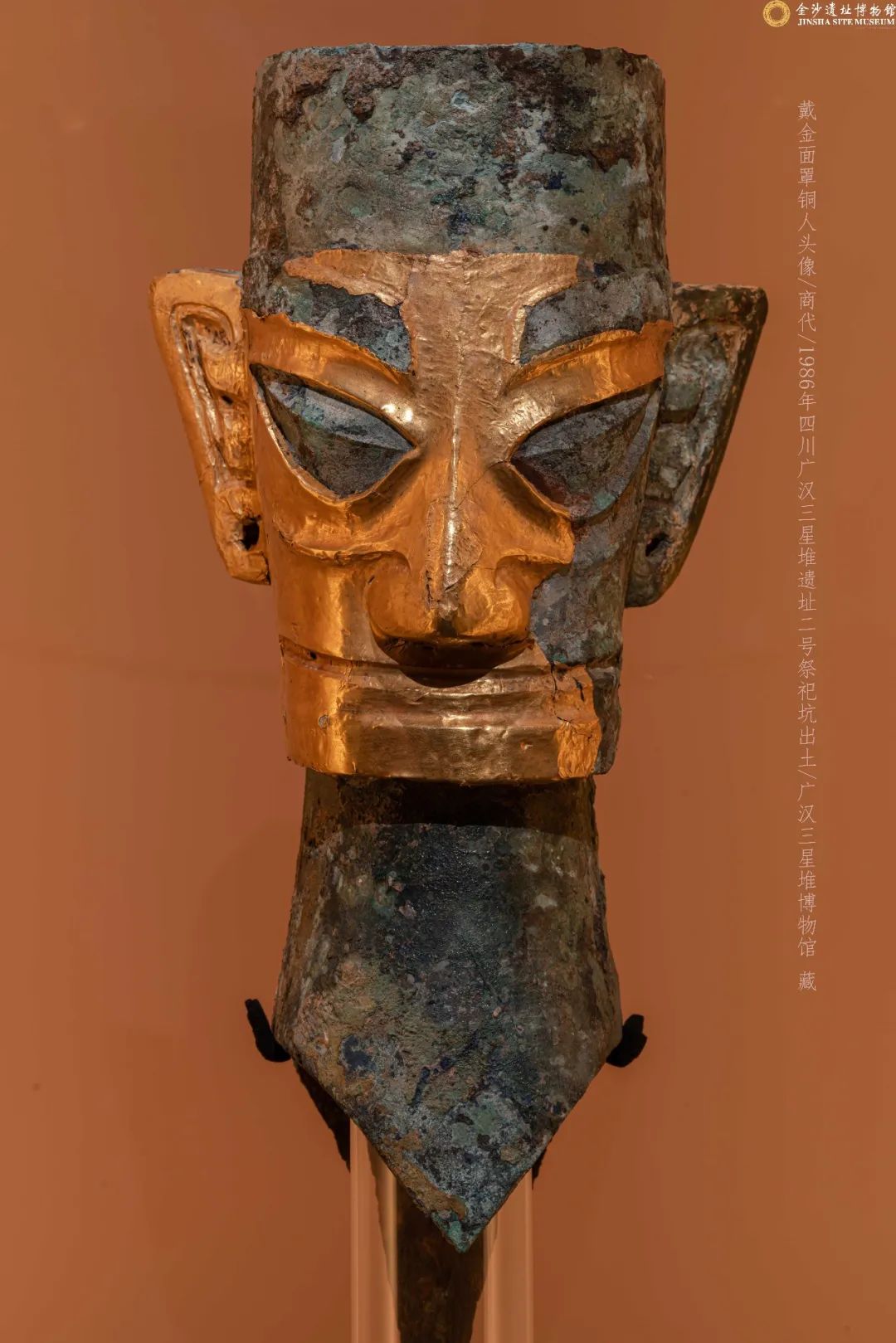 戴金面罩铜人头像,四川广汉三星堆遗址出土