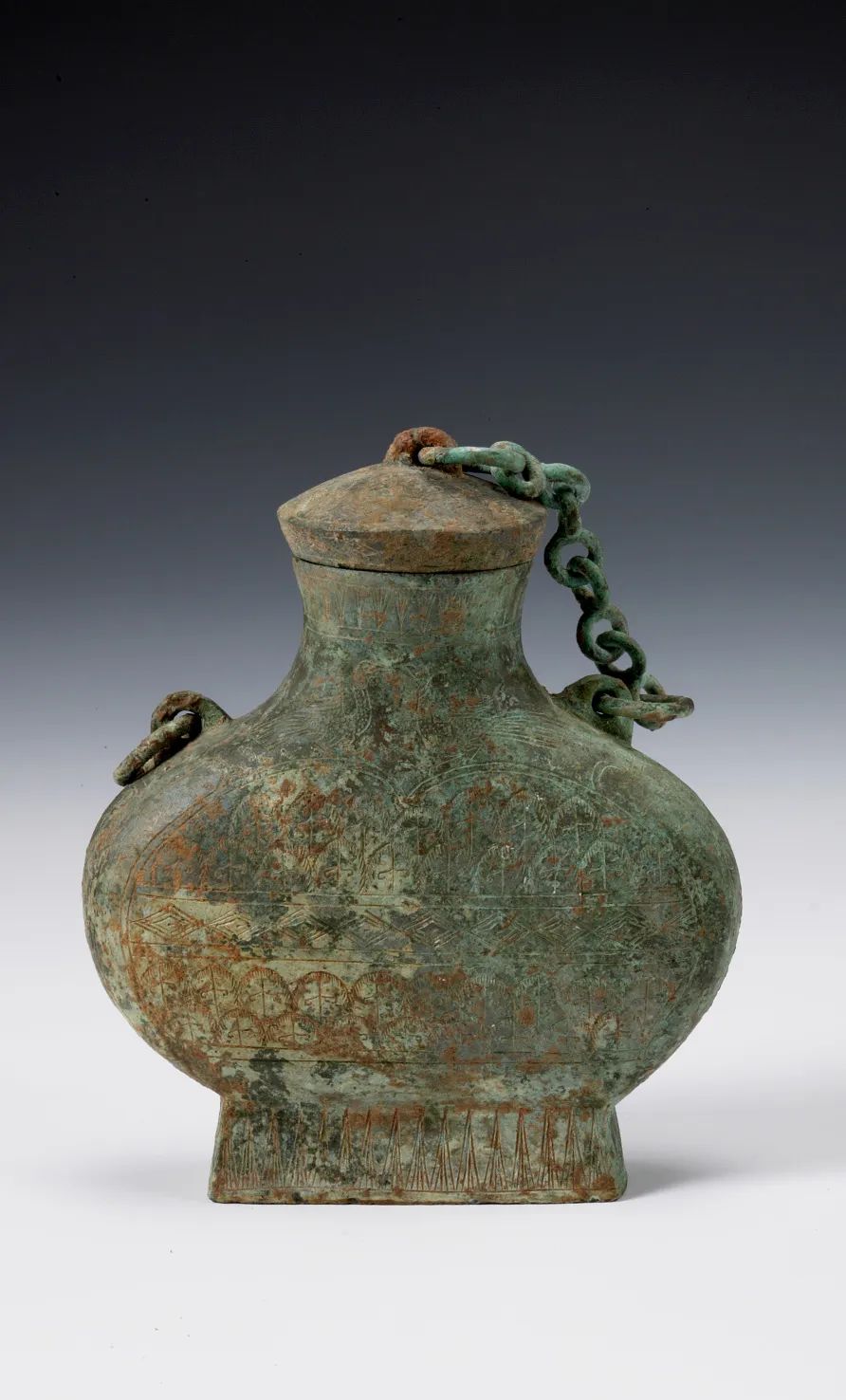 汉羽纹系链小铜扁壶 合浦县博物馆