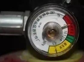 2、检查压力,压力指示器指针在绿区时可放心使用,黄色区域为压力过高,红色区域为过期。左为正常,右为过期
