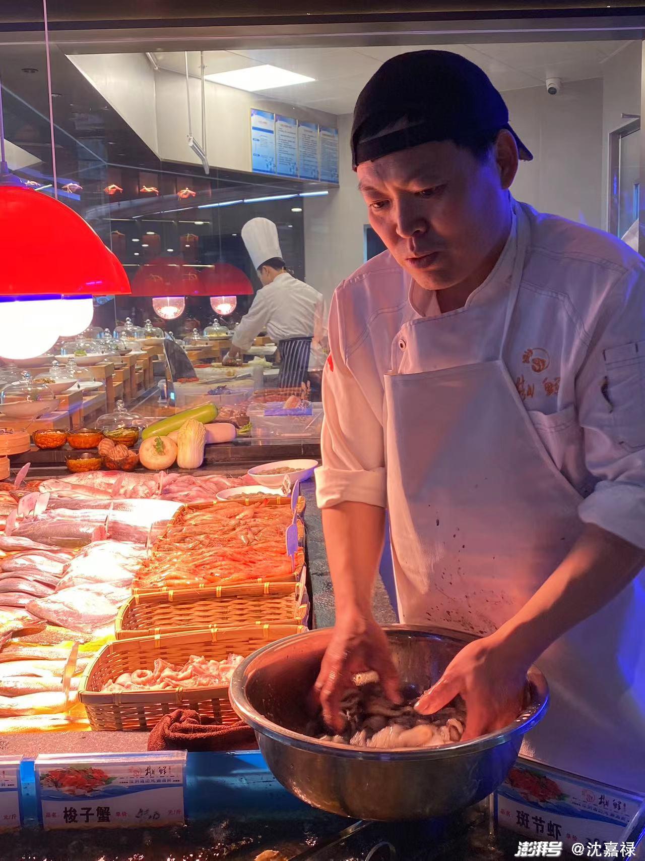 厨师正在给望潮做按摩
