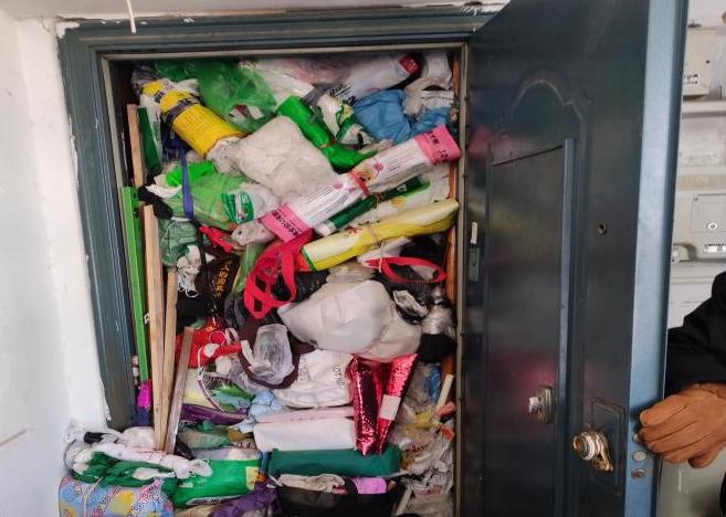多年来,弯弯居委会、物业公司、社区民警等多次上门进行宣传教育,联系其子女等,但都收效甚微,老人依旧我行我素,物业前脚清理掉,他后脚去捡回来。不仅如此,他还花钱购买各种垃圾堆放在房屋和公共楼道内,周围的邻居深受其害。