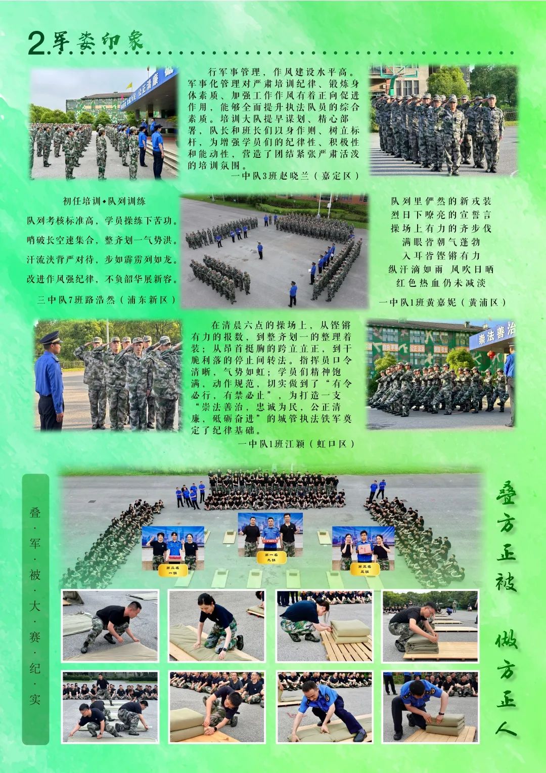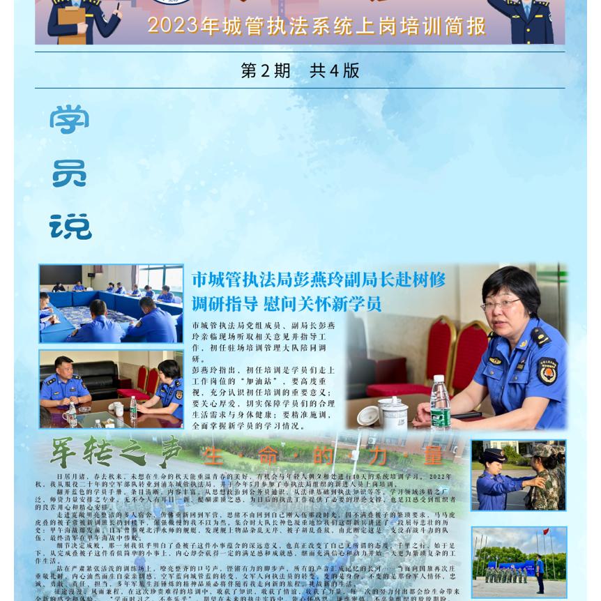 序言为更好地提高初任培训的实效性、趣味性,市局围绕新时代城管执法工作实际,设置了“行政处罚听证”模拟、城管执法行刑衔接、绿化市容与房屋管理等领域的执法实务课程,以案释法、以训强基。课程学习之余,培训大队组织了多项素质拓展、文体竞赛作为课程的延伸,丰富学员培训生活。
