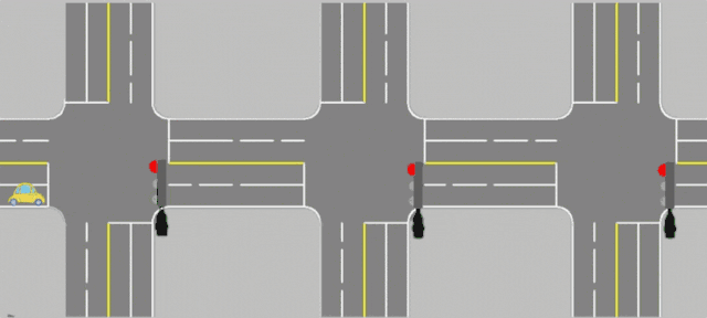 “绿波带”就是把一个个独立的路口串起来,通过设定路口之间红绿灯启动时间差,实现多辆车连续通过多个路口,达到少停车或不停车的效果,提高通行效率。