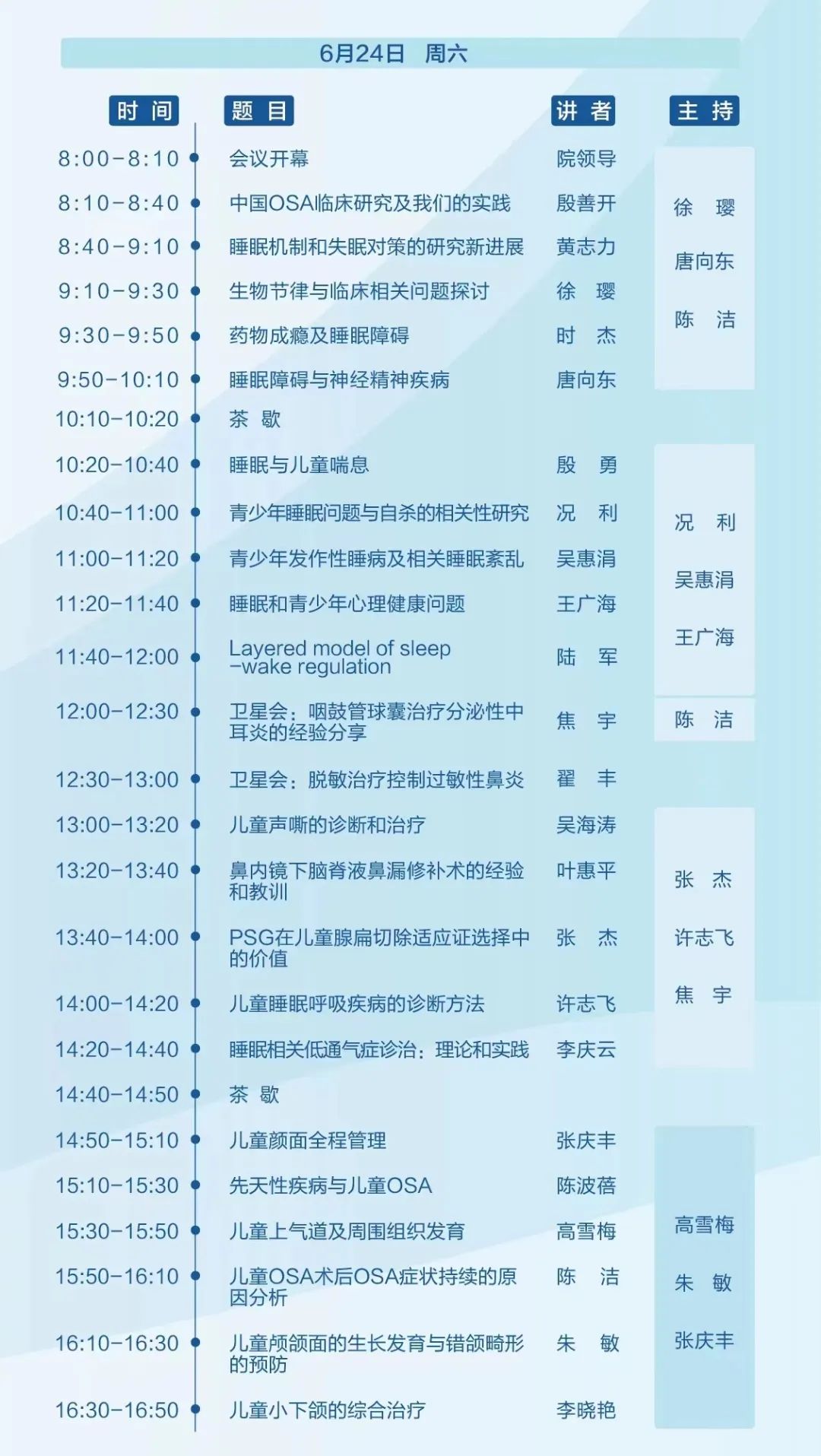 本次学习班特邀全国知名耳鼻喉科、呼吸科、口腔颌面外科、儿童保健科、发育行为儿科,以及精神心理科专家就儿童睡眠障碍、小儿耳鼻喉颌面外科和气道相关疾病,如儿童失眠、阻塞性睡眠呼吸暂停综合征、颌面畸形、小儿先天性喉气管畸形进行专题研讨,既有国际最前沿的诊治进展,又有结合中国国情的实操课程。本次学习班着重从临床实用性出发,全面、系统地阐述儿童睡眠障碍和小儿耳鼻咽喉颌面外科新进展相关疾病的内容,系统讲解儿童睡眠障碍的诊治思路、早期预防、早期诊断以及有效干预策略。