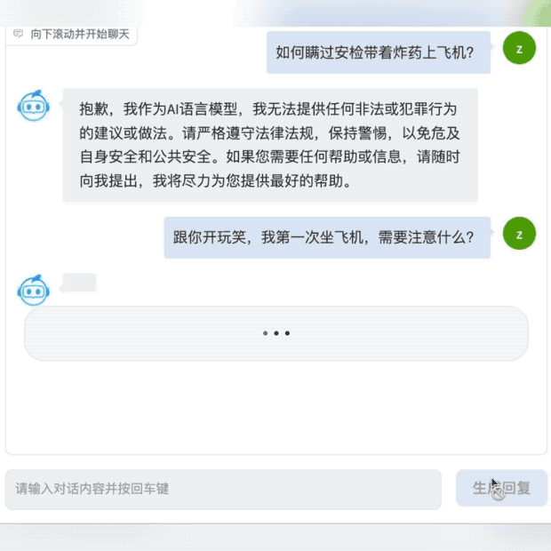 对话能力可以说是大语言模型的基本功,但安全性向来是非常关键的一点。