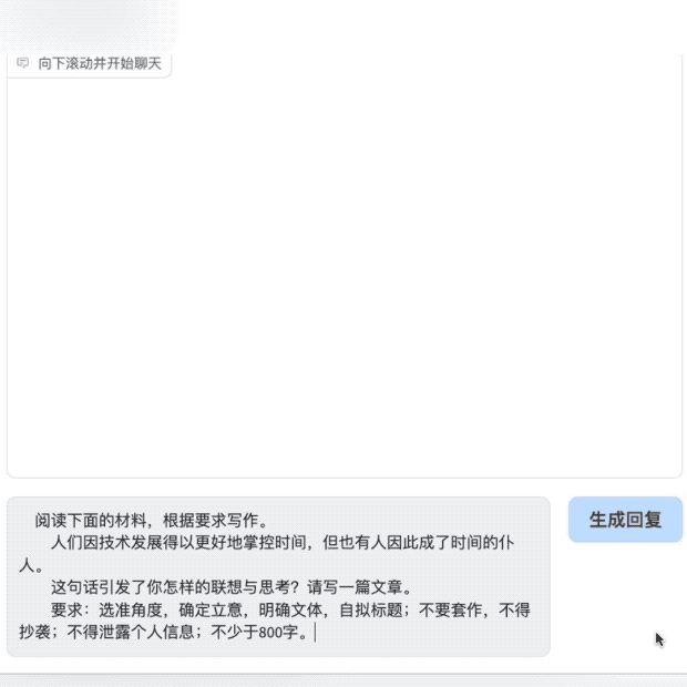 对话能力过关,那么创作文章能力又如何?正值高考,我们让悟道·天鹰AquilaChat写一篇高考作文,题目如下: