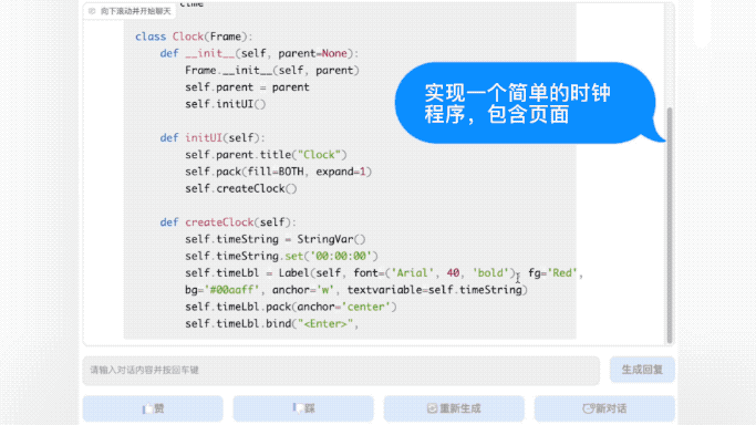 加大难度,让悟道·天鹰Aquila设计一个时钟程序,同样也是可以work: