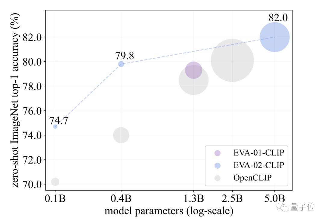EVA-CLIP结合了表征学习、优化和增强的新技术,与以前的CLIP模型相比,在具有相同数量的参数情况下,训练成本显着降低,从而实现了卓越的性能。具体而言,EVA-CLIP超越了此前最强的OpenCLIP模型,在ImageNet1K零样本Top1达到最高的82.0%准确率。