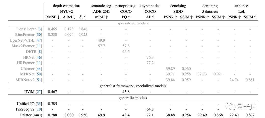 从最终结果来看,无论是在难度较高的视觉理解任务,还是相对简单的图像处理任务上,Painter所表现出来的性能都具备一定的竞争力。