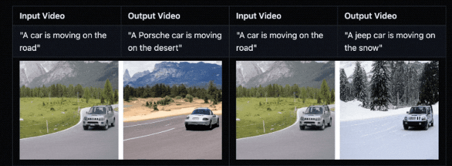 例如在下面的示例中,仅仅是一句话的事情,便可以秒换掉视频中的车和背景。