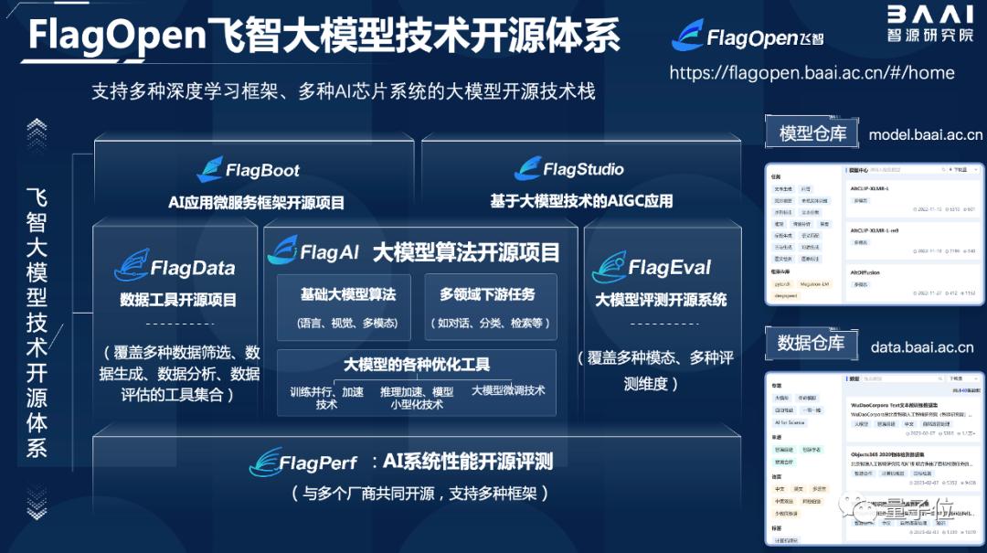 今年年初正式发布的FlagOpen飞智大模型技术开源体系,开启了大模型时代“新Linux”生态建设。