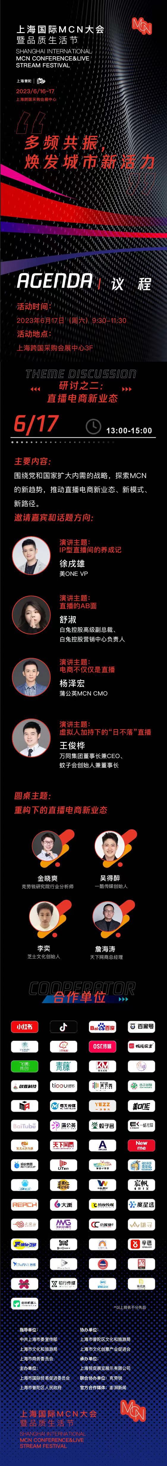 6月16日至17日,2023上海国际MCN大会暨品质生活节将在上海跨国采购会展中心召开。17日大会上,“直播新业态”的话题也将作为研讨话题之一,由蚊子会创始人兼董事长王俊桦等MCN佼佼者,一同探索MCN的新趋势,推动直播电商新业态、新模式、新路径。