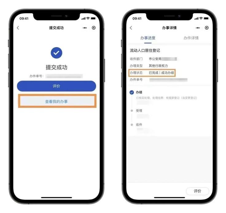 3.提交成功后可在“查看我的办事”中查看办事进度。