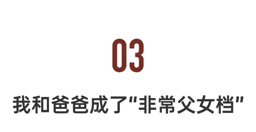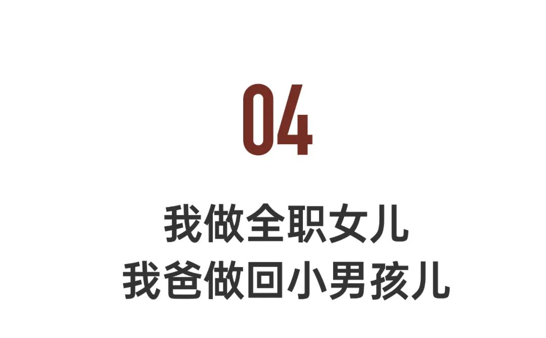 我爸有一次晚上吃饭喝了酒,打电话给我。如果是以前,我可能比较冷漠,就帮他叫代驾了。但现在作为全职女儿,我就直接去接他了。一路上,他会跟我聊天说说刚才吃饭大家聊了什么。