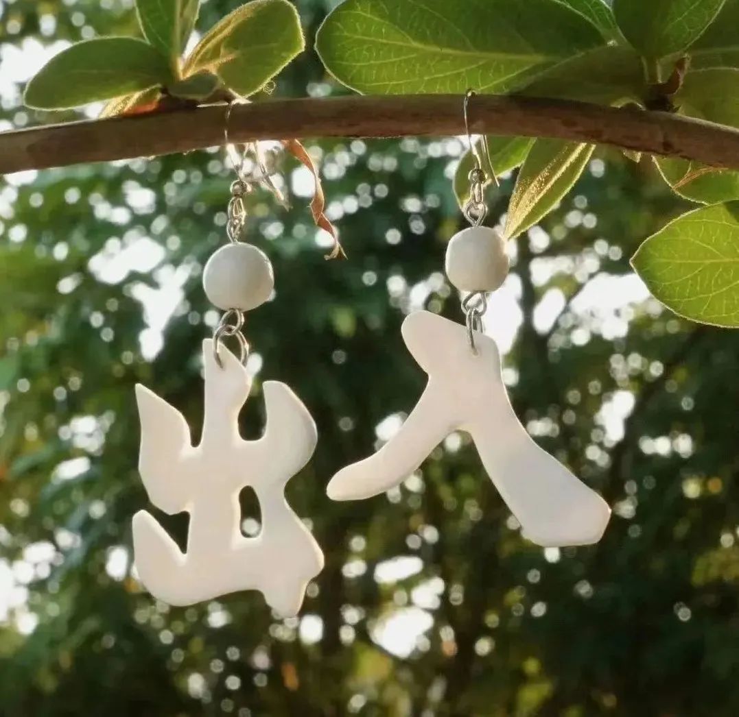 ▲小羊制作的陶瓷耳环,寓意为“左耳进右耳出”