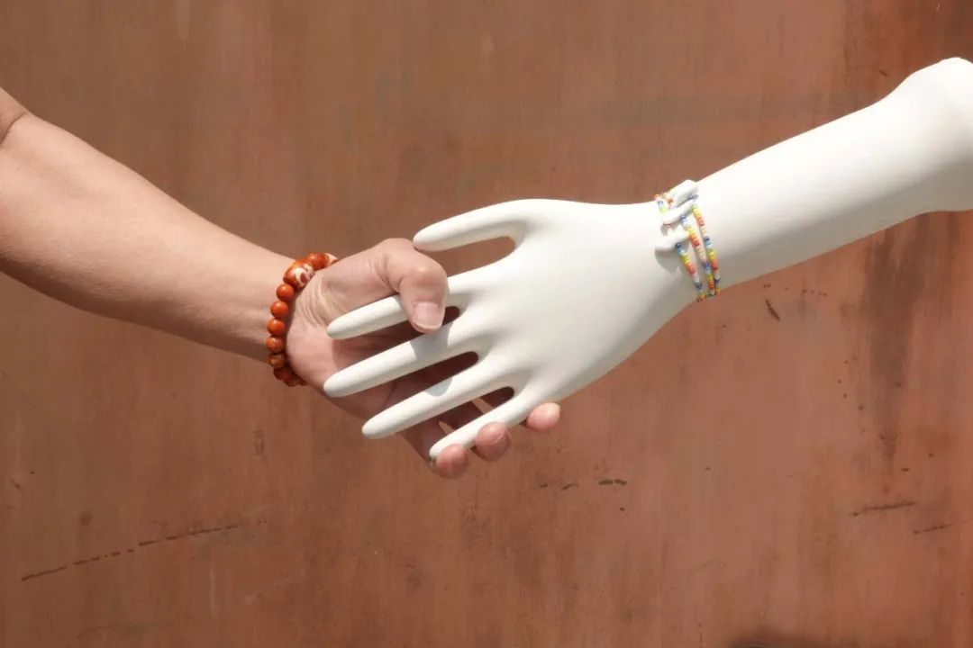 ▲爸爸的手和小羊作品的合影,“合作愉快”的纪念