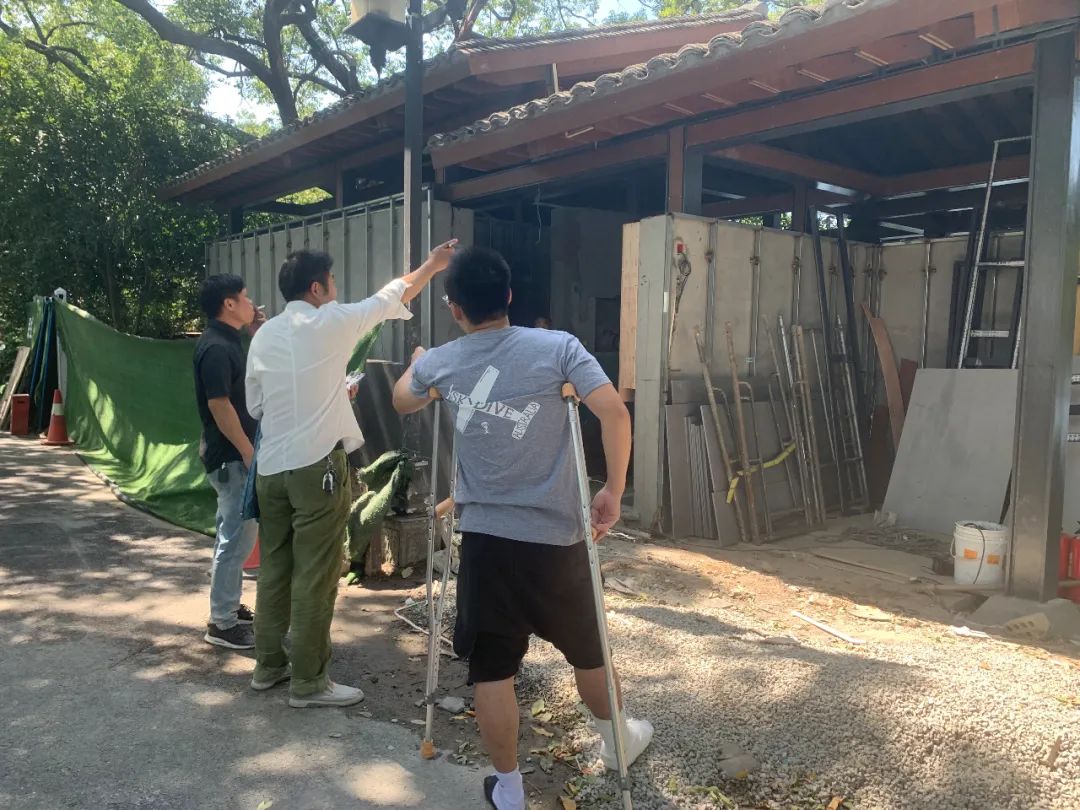苏堤项目实施过程中,赵韶华杵着拐棍前来工地参与工作这座公厕屋顶采用中式传统坡屋顶,代表中国古建筑的檩条、椽子完全暴露在外。兰心团队“为了让建筑更具变化和趣味性。在屋顶处理上,我们做了错层处理,犹如山峦重叠,让建筑体更生动,室内空间也更具多样的空间体验。”