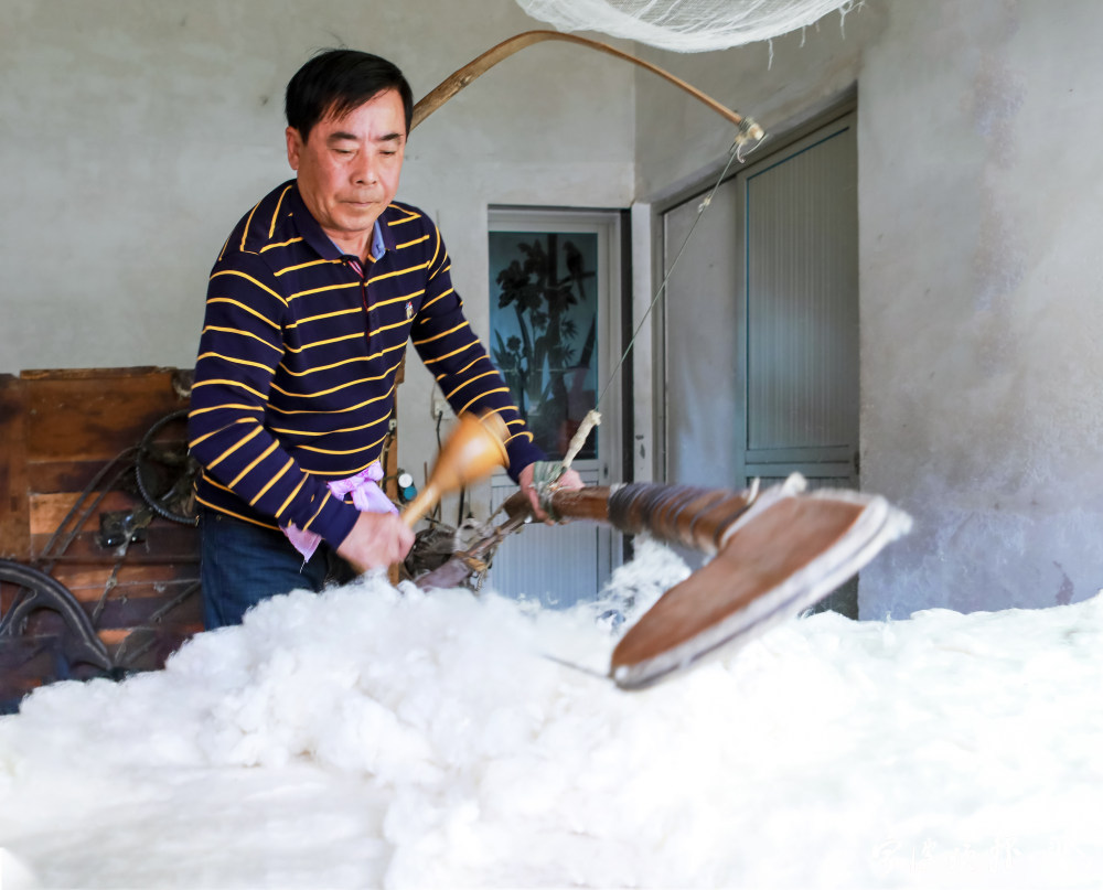 朱国和正在弹棉花