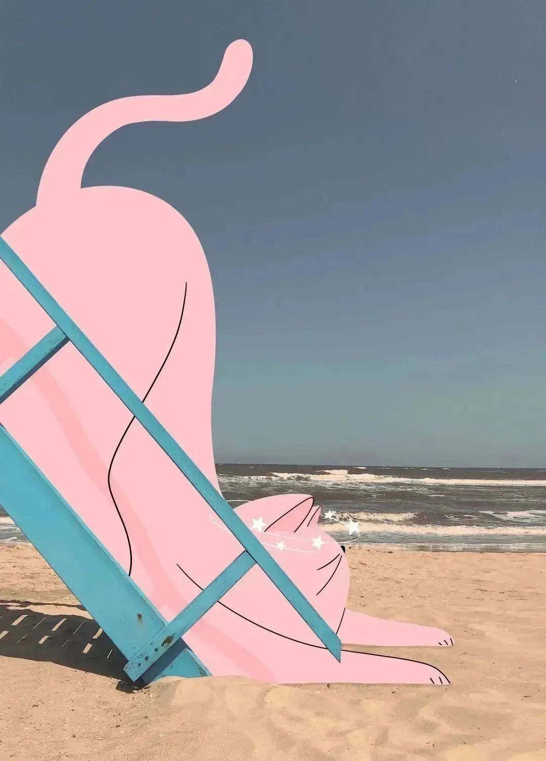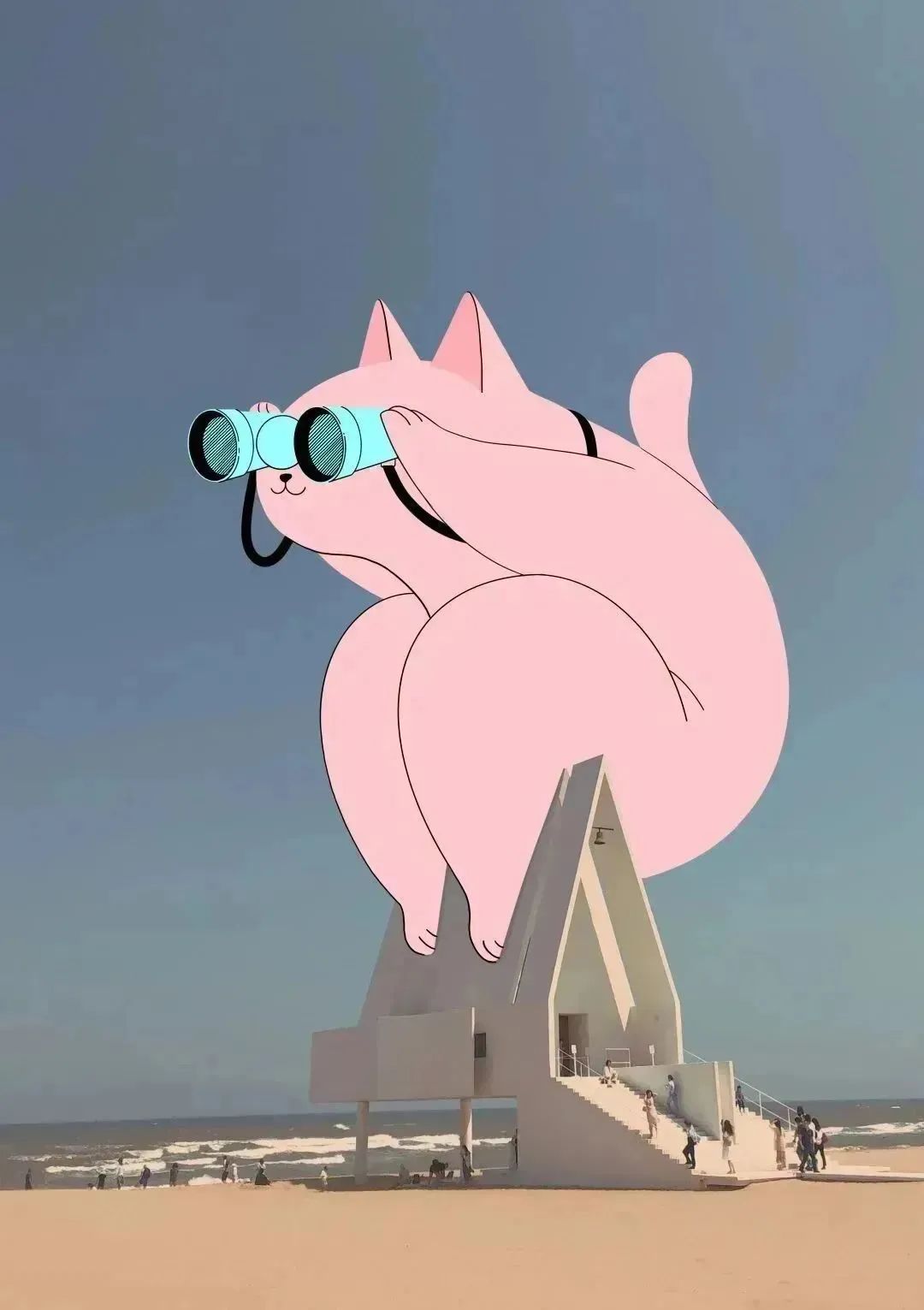 其中一个四处旅行的猫猫形象系列插画,在网络上最受大家的喜爱。在画面中,她以柔软细腻的笔触,勾勒出了一只古灵精怪的卡通猫猫形象,让它在不同的现实场景中自由穿梭,履行它可可爱爱又稀奇古怪的奇思妙想,这样自然又纯粹的画面氛围,吸引了很多喜爱它的粉丝。