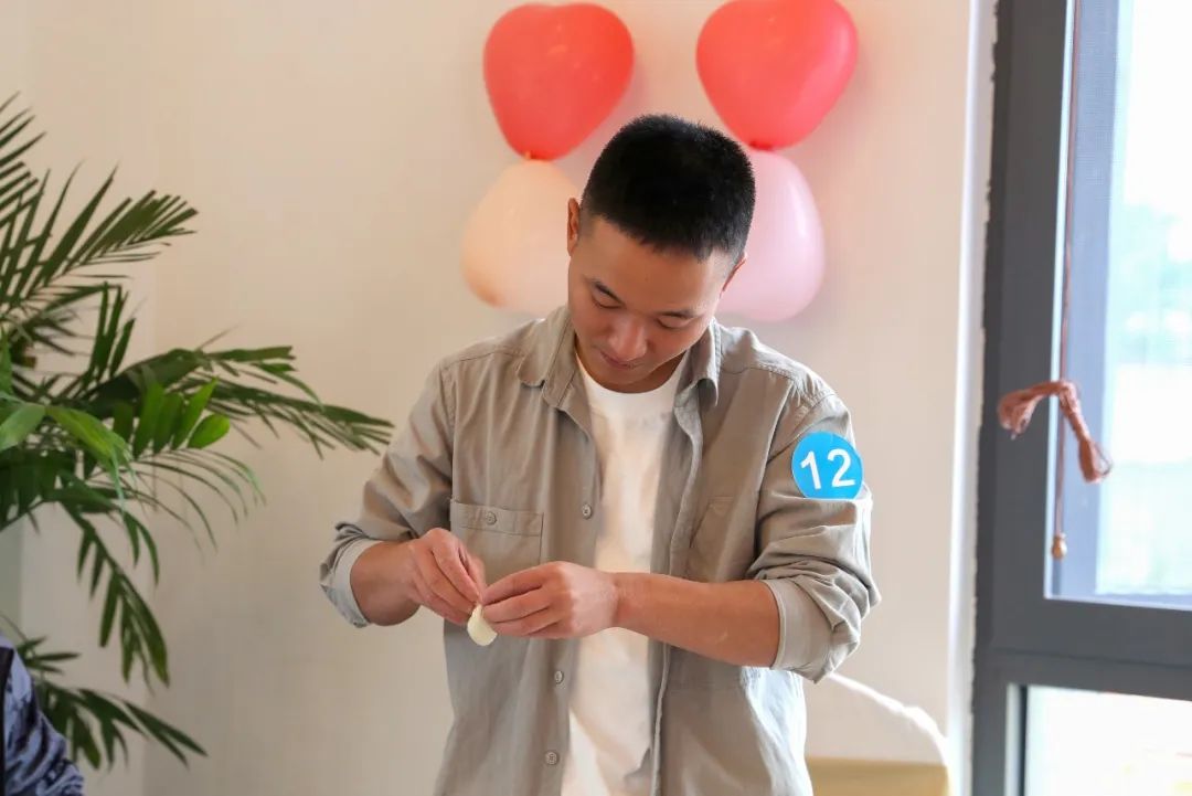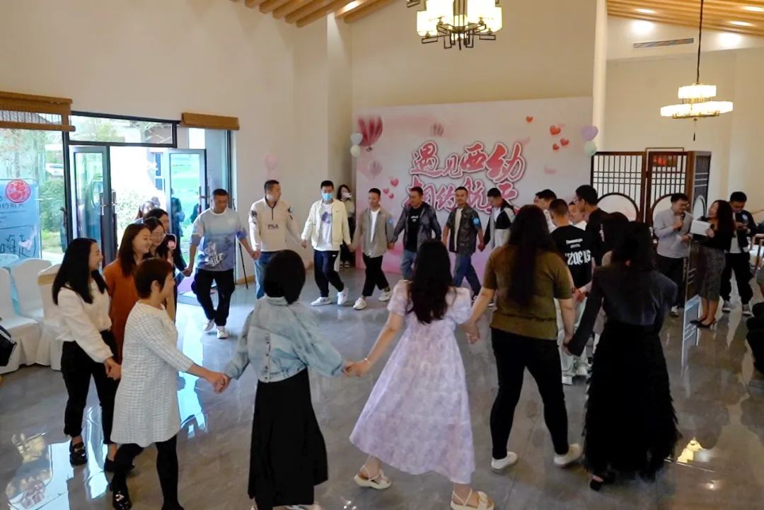 在活动的互动环节,情意绵绵的音乐声中,男女嘉宾手牵手走到会场中央,开启了丰富多彩的游戏之旅——现场的每一个游戏都需要男女嘉宾共同参与、齐心协力以及默契的配合才能完成,在游戏中优胜的小组将会得到主办方赠送的精美小礼物,反之,则会受到相应的“惩罚”。青涩拘谨的男女青年们通过各种挑战,由陌生到相识,逐渐变得默契,现场充满了欢声笑语、气氛热烈而温馨。