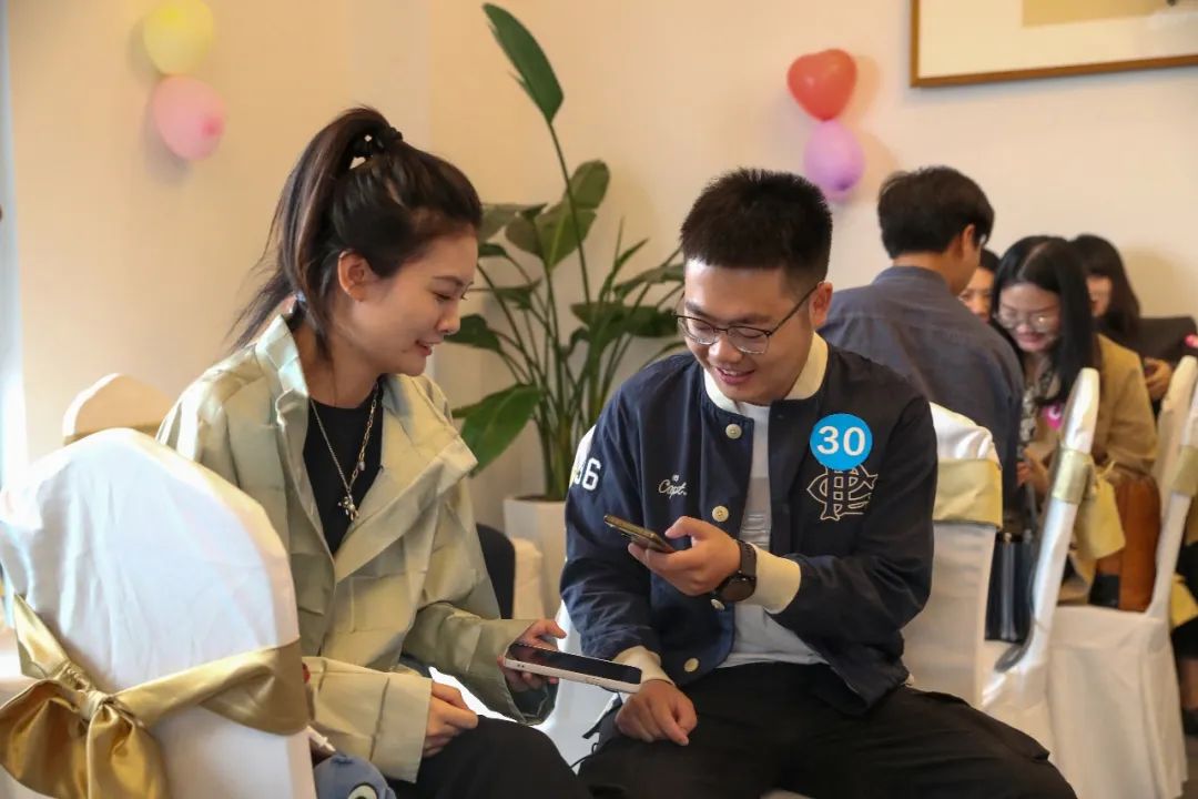包饺子游戏的间隙,男女青年们纷纷走向心仪的那个TA,大胆寻求联系方式,以便进一步沟通发展。