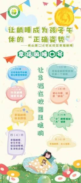 △舟山二小北校区将午休和礼仪教育、劳动教育相结合,制定每个班级特定的躺睡口号。