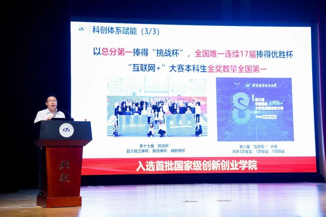 副校长吕卫锋作题为《向北航行 一路华章》的主题报告,分为启梦北航、逐梦北航、圆梦北航三个部分,详细介绍了北航的办学历史、办学实力、人才培养情况和2023年招生专业。