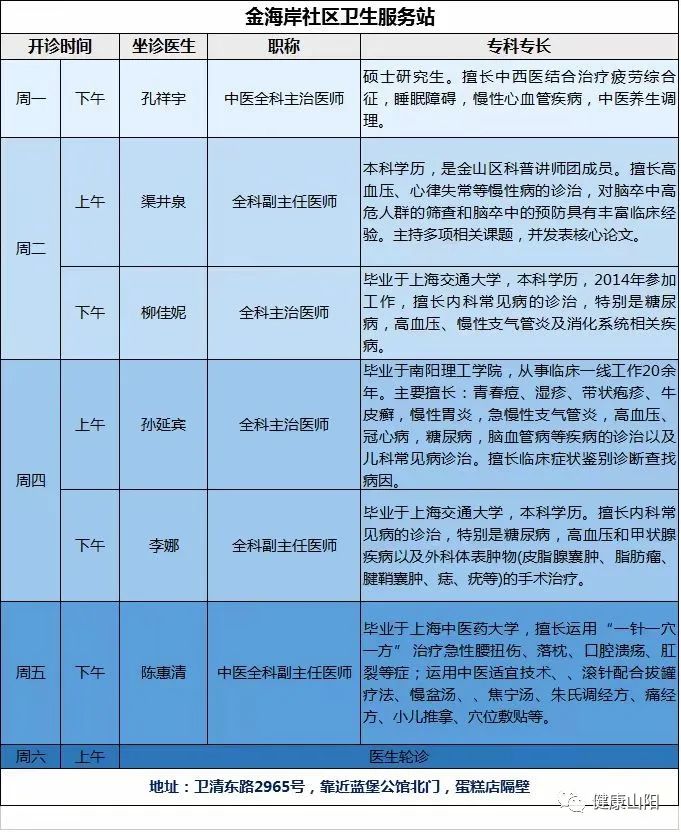原标题:《就在身边!金山这两家社区卫生服务站周六增开门诊啦!》
