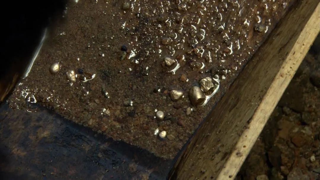朱开山把手伸进水里,他捧起一把沙石,水从他的指缝间缓缓地淌下去,几个金粒在阳光下闪着耀眼的光芒。