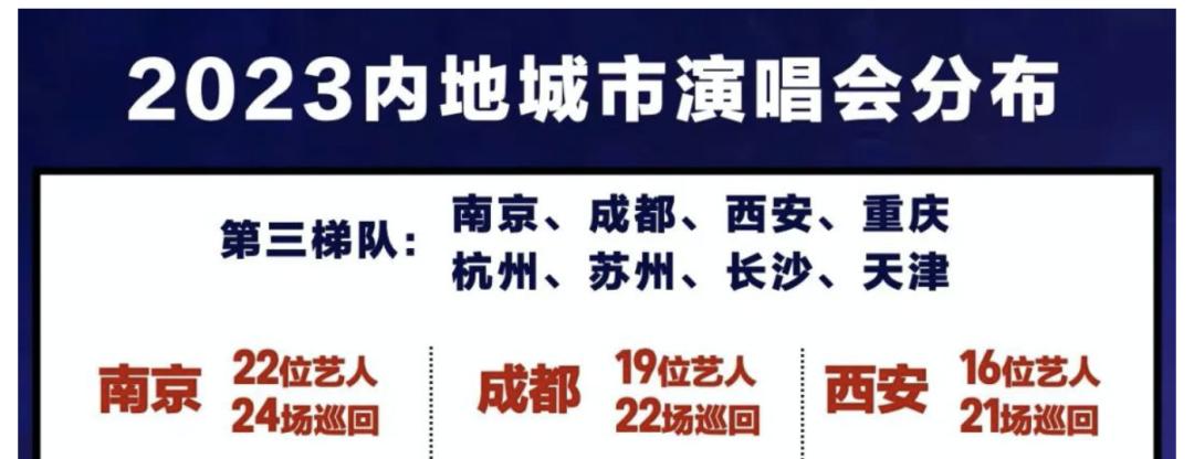 穗沪深之外,武汉、南京、成都、西安、重庆、杭州、苏州、长沙、天津也是演唱会的热门城市。以下是知名博主“这个城市有点东西”统计的内地城市演唱会分布:
