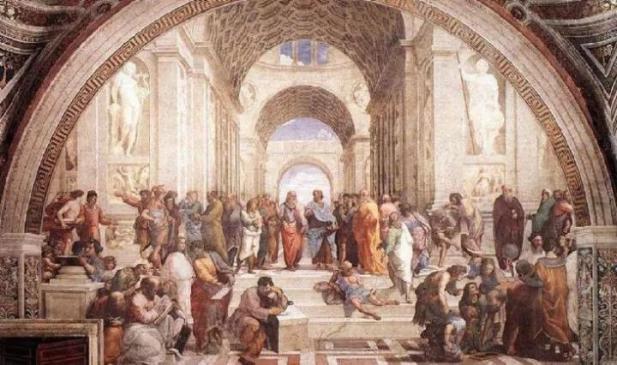 (拉斐尔·桑西 《雅典学院》)首先,phantasia能够为主体所意识到,在很多情况下是它是主体按自身设想,根据经验构建出来的。亚里士多德说,它“可以随我们的意愿而作成的,(譬如,我们可凭记忆,追回一个心理印象,或凭备忘录阴处前存的一幅图景,或虚构一个魅影)”(2016,p. 147)。这种“随愿而作”的想象,必然要求主体的自觉意识。而现象学所论之先验想象,却不是由主体自主决定的,而是由主体自身难以意识到的先验结构形成的,不具有“随愿而作”性。Phantasia与记忆印象的关联,使得它更近于现象学中所说的经验想象,后者可以由主体按照经验中的印象而建构出整全的意象;它也能加贴近幻想,因为幻想也是由经验而转化性地生成的意象种种。