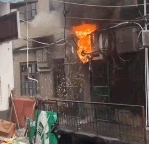 2020年7月7日吉林四平,强降雨导致雨水进入一小区配电箱,导致短路后起火爆燃,现场火光四溅,发出强烈的火花电击声。消防员到场后利用散射和点射的方式进行针对性扑救,十分钟后火势被成功扑灭,幸无人员伤亡。