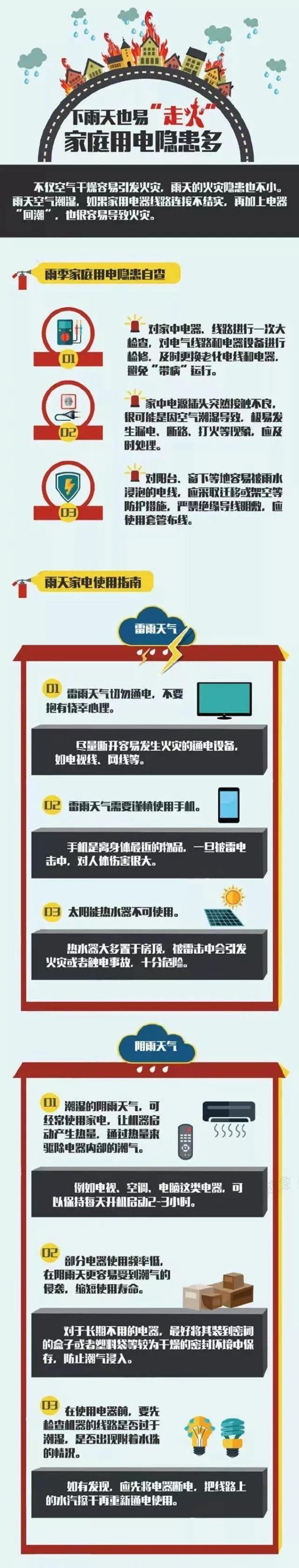 我们知道,天干物燥,容易着火。下雨天温度低,湿度大,小火苗应该烧不起来了吧?错了!雨天更要提防火灾!尤其是家电火灾!