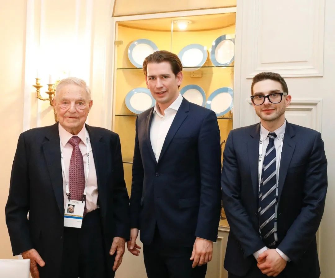 ▲索罗斯父子与奥地利前总理库尔茨。