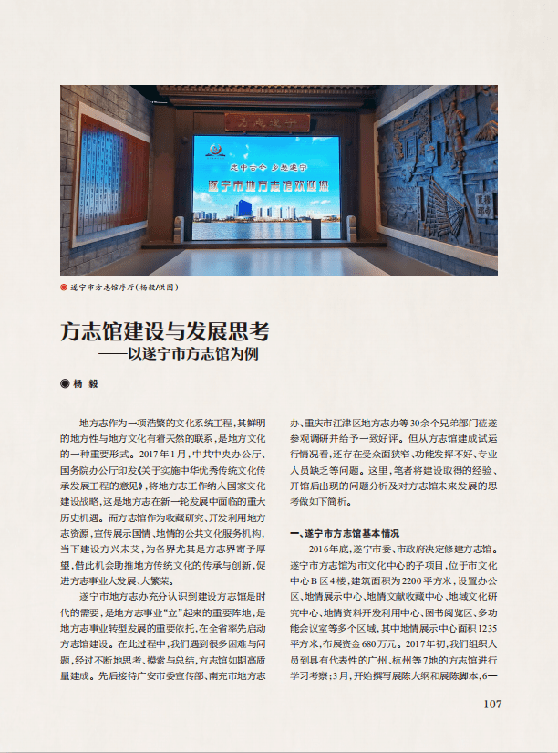 【论坛】方志馆建设与发展思考——以遂宁市方志馆为例‖杨毅