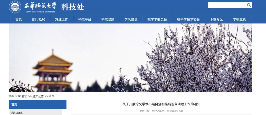 据杭州师范大学人文学院网站6月6日消息,杭州师大科研处发布通知称:按照浙江省科技厅和浙江省教育厅《关于开展论文学术不端自查和挂名现象清理工作的通知》的工作部署和要求,现在学校开展论文学术不端自查和挂名现象清理工作。