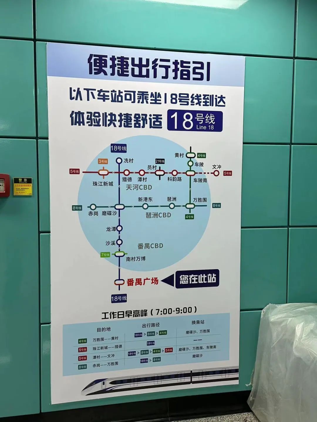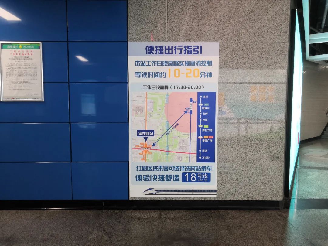 这两天,有市民发现,广州地铁在3号线两个车站新推出指引,教乘客在高峰期如何通过18号线更快更舒适地出行。