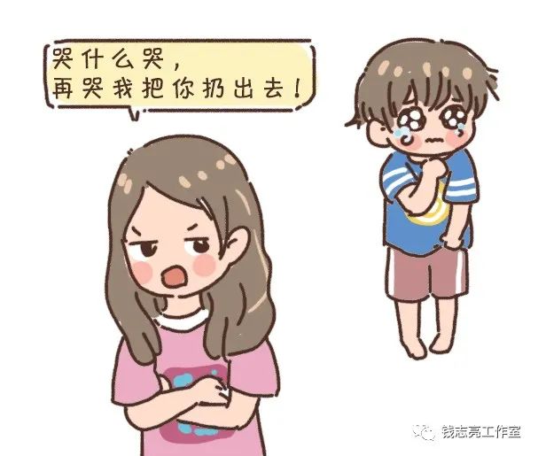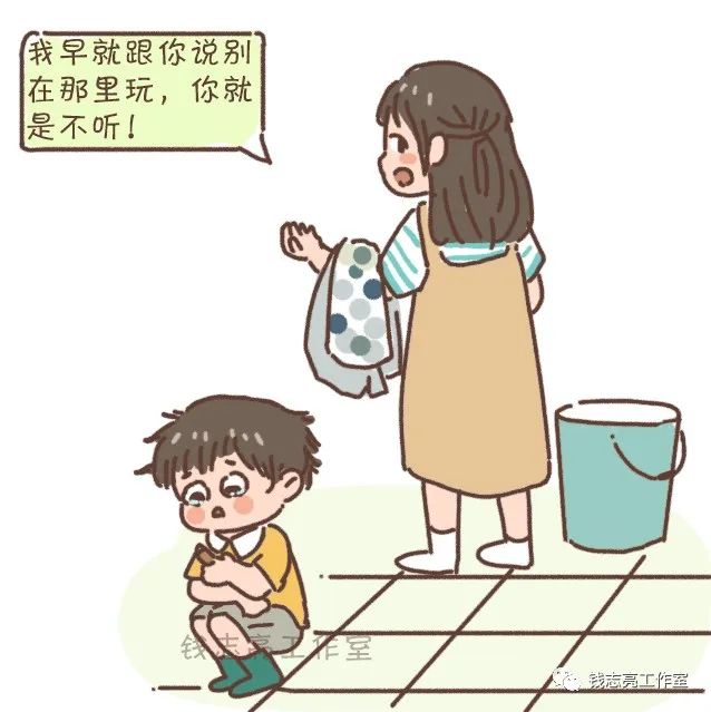 孩子在用哭声传递一个信息:“我还没从害怕和疼痛中缓过来”,他渴望妈妈的理解与共情,但妈妈的反应无疑让他很失望。