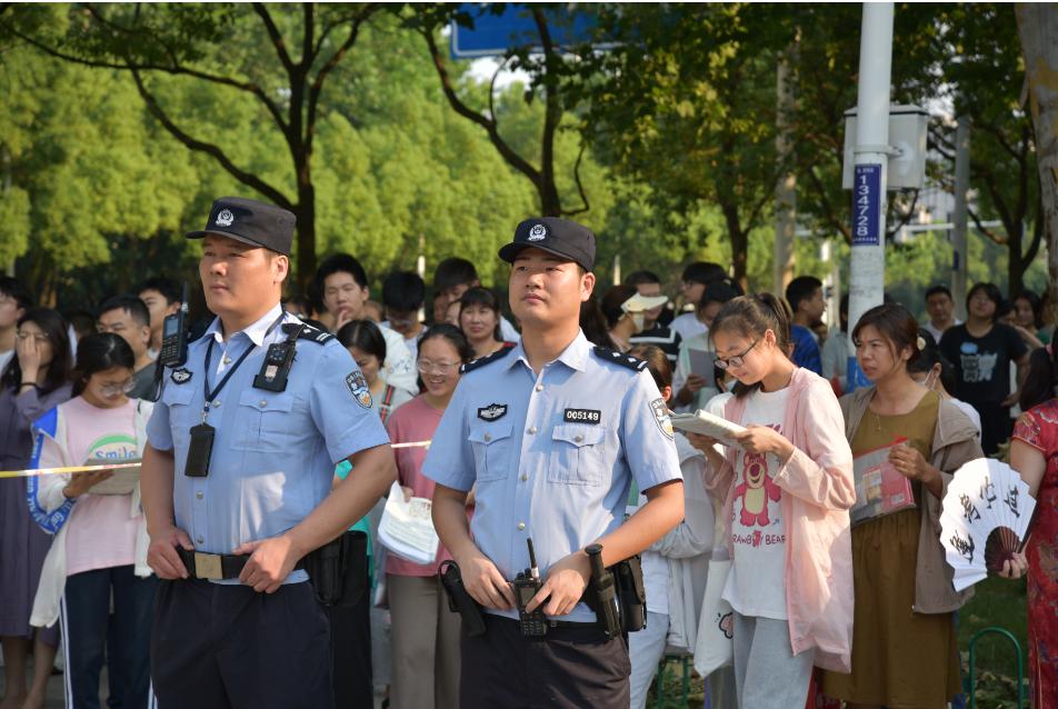 合肥市第四十六中学考点,包河分局民警在考场外执勤,确保考点周边安全有序。