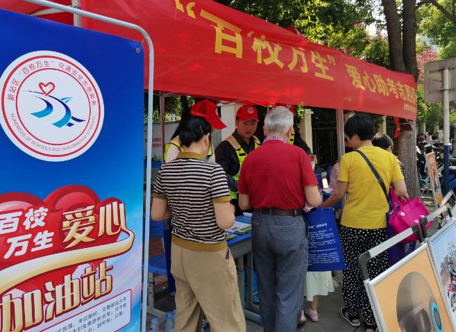 交警支队新站大队组织的“百校万生”爱心送考志愿者为考生提供“一对一”预约送考服务。答好“坚守卷” √