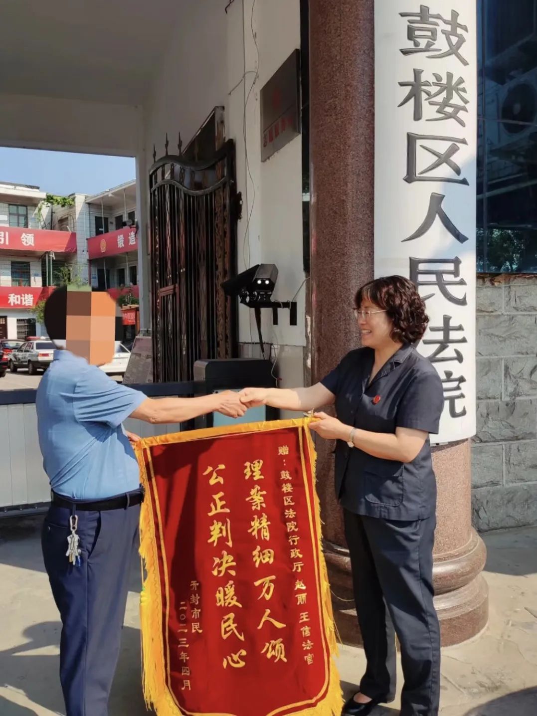 鲜红的锦旗,真诚的感谢,是人民群众对法院工作最好的肯定!6月13日一早,当事人王某将一面写有“理案精细万人颂,公正判决暖民心” 字样的锦旗送到开封市鼓楼区人民法院赵丽法官手中,向她表达了内心的感激之情。