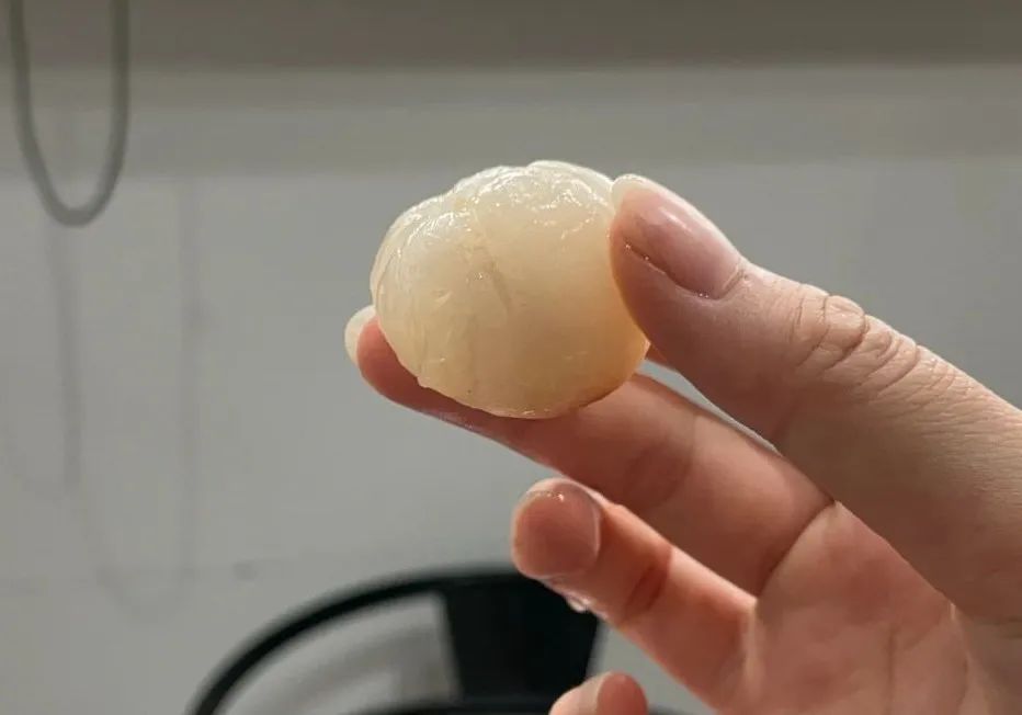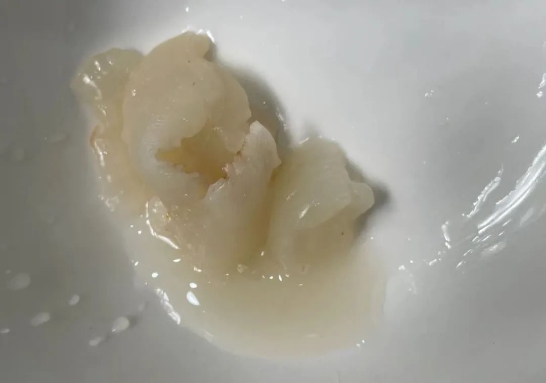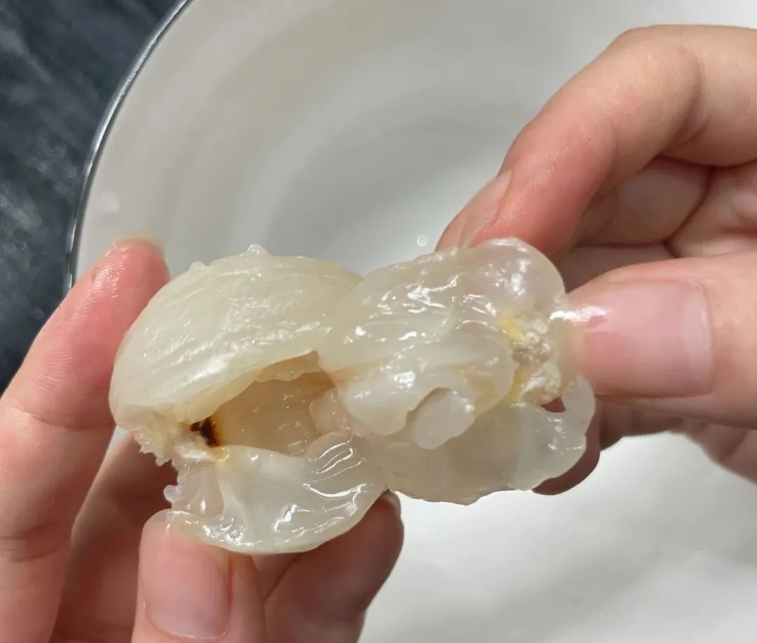 @黄一白:像吃没有蛋黄的水煮蛋!一口下去咬不到硌牙的东西,甜甜的像果冻,口感吃着像肥肉,爆汁不卡牙。