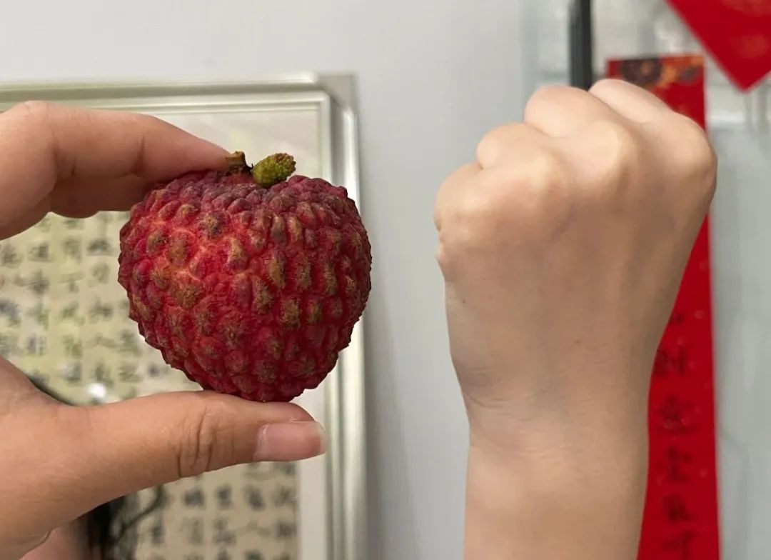@翠勇:比馒头小比鸡蛋大,在品尝的过程中,汁水都溅到了两米之外,荔枝果肉在嘴里爆开,就像灯光洒满舞台,顺滑甜美。荔枝王,爽爽爽。
