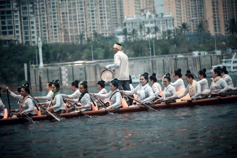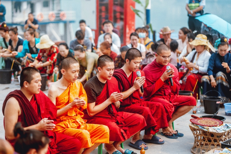 传统的泼水节是四月中旬,地州和各乡镇举行的日期会错开,每一天的节庆活动都不同。“除了泼水狂欢和赶摆,还有赕佛、放高升、赛龙舟、孔明灯等活动,非常多样。但大型的活动基本都是在景洪市澜沧江边上举行,各市县、村寨也会组织举行各自的泼水节活动。”玉南丙告诉《丝路文明》,泼水节的第一天,往往是以澜沧江水域举行的龙舟赛开启。